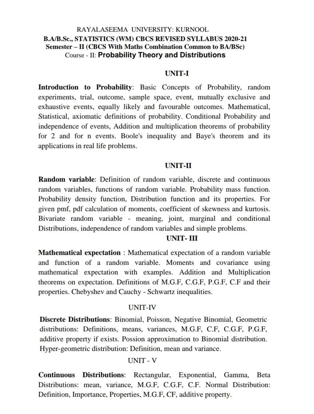 B.Sc Statistics 1 st year II nd Semister Syllabus